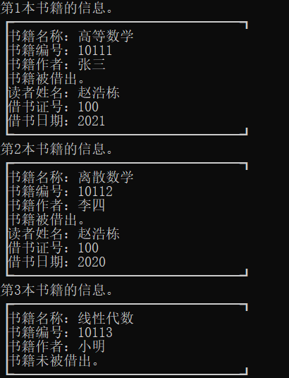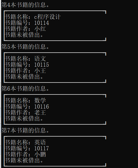 cout << "第"<<i+1<<"本书籍的信息。" << endl;