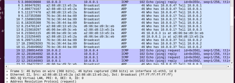 二.使用Mininet搭建的SDN拓扑,如下图所示,要求支持OpenFlow 1.3协议,主机名、交换机名以及端口对应正确