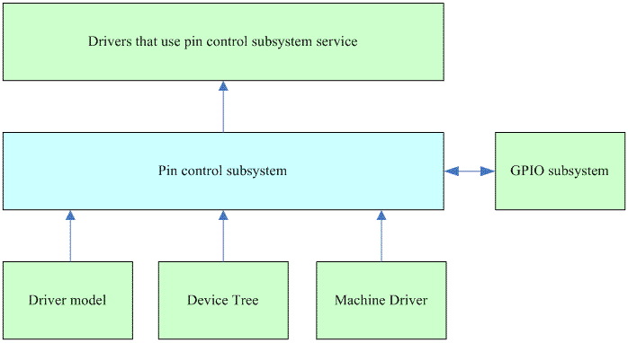 对上给GPIO子系统调用;因此,在物理硬件与GPIO子系统之间,搭起了一个桥梁;该桥梁就是pinctrl子系统;