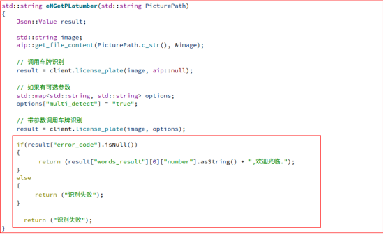 //把拍下来的照片传递给百度AI接口获取车牌号