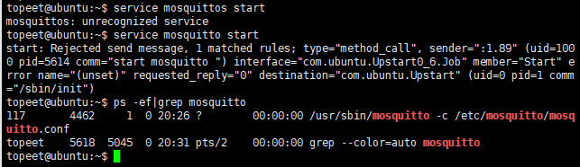 service mosquittos start // 启动服务 ps -ef|grep mosquitto // 查看服务是否启动