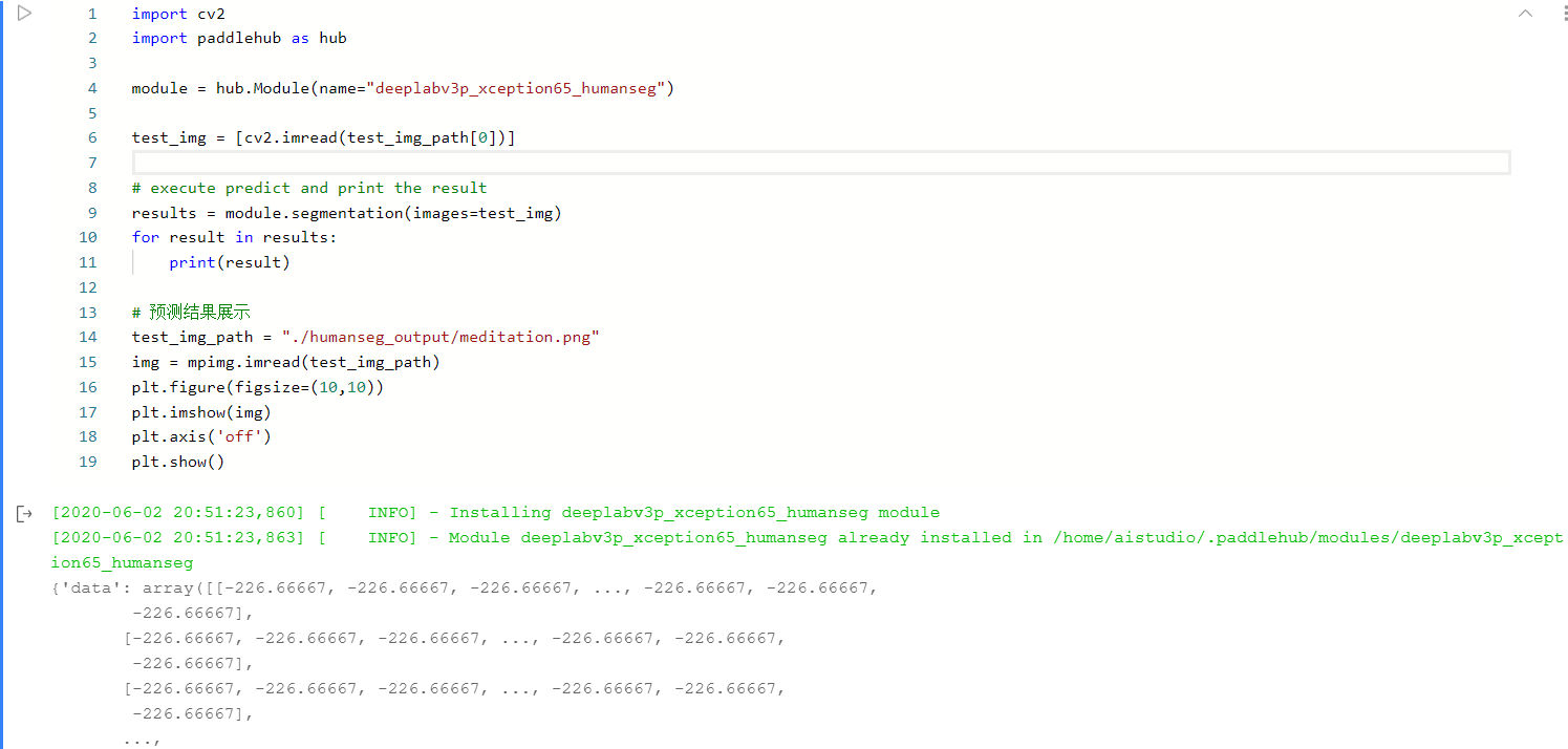 通过加载PaddleHub DeepLabv3+模型实现一键抠图