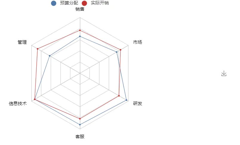 # -*- coding: utf-8 -*- from pyecharts import Radar ''' 雷达图 ''' # 雷达图 schema =[ ("销售", 6500), ("管理", 16000), ("信息技术", 30000), ("客服", 38000), ("研发", 52000), ("市场", 25000)] v1 =[[4300, 10000, 28000, 35000, 50000, 19000]] v2 =[[5000, 14000, 28000, 31000, 42000, 21000]] radar =Radar() radar.config(schema) radar.add("预算分配", v1, is_splitline=True, is_axisline_show=True) radar.add("实际开销", v2, label_color=["#4e79a7"], is_area_show=False) radar.show_config() radar.render(path='./data/03-05雷达图.html')