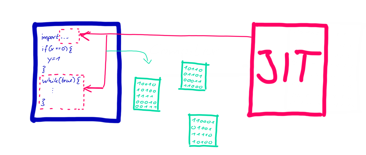 尽管代码完全相同,但代码的执行方式却大不相同。PyPy 提升速度的秘诀是「即时编译( just-in-time compilation)」,即 JIT 编译。