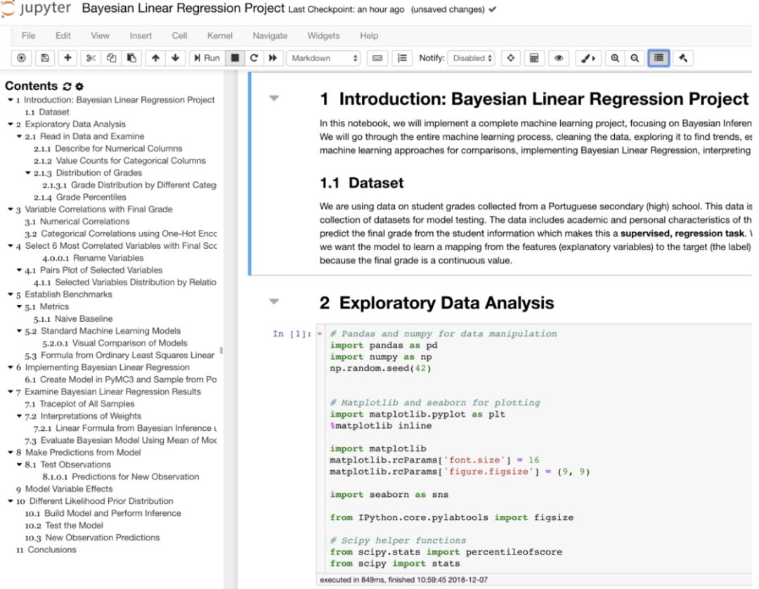 如果你在一个 Jupyter Notebook 中同时开启了十几个单元格,那你想跟踪所有单元格就会有些困难。Table of Contents 通过添加 TOC 链接解决了这个问题,通过 TOC 链接你可以定位到页面中的任何位置。