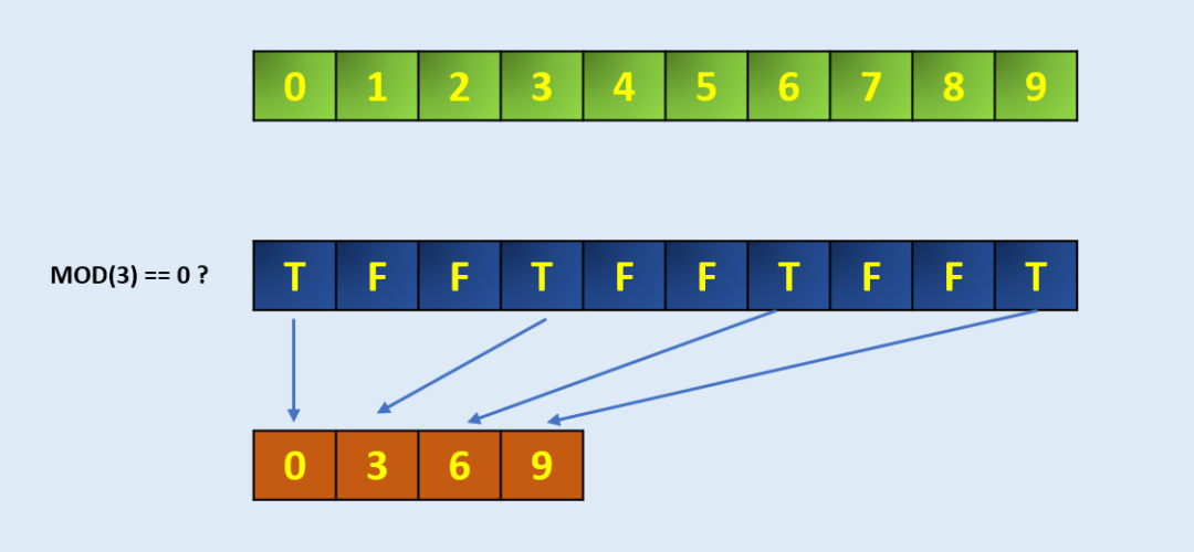 arr = np.arange(10) arrarray([0, 1, 2, 3, 4, 5, 6, 7, 8, 9])# Define the codition, here we take MOD 3 if zero condition = np.mod(arr, 3)==0 conditionarray([ True, False, False, True, False, False, True, False, False,True])np.extract(condition, arr) array([0, 3, 6, 9])