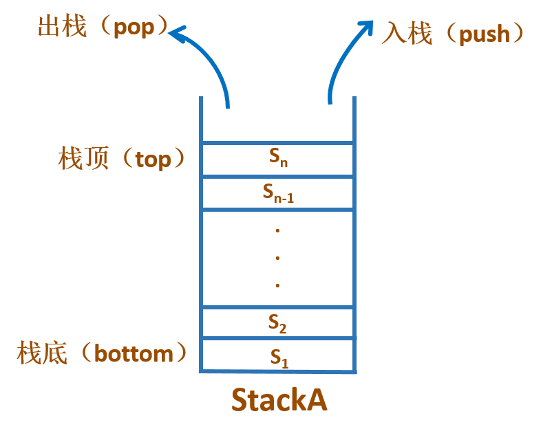- 栈顶(top):允许进行数据插入和删除的一端