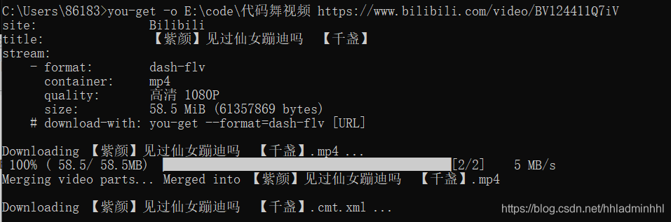 安装完成后,通过you-get将视频下载到本地。