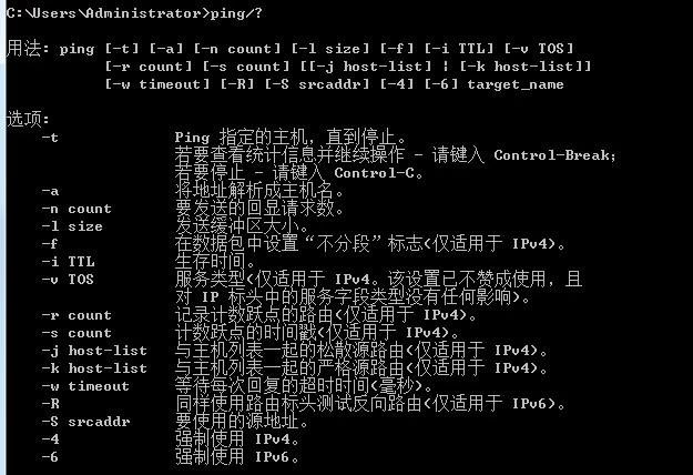 更多ping命令参数的应用,我们可以在命令行里输入:ping/? 能够查看到。