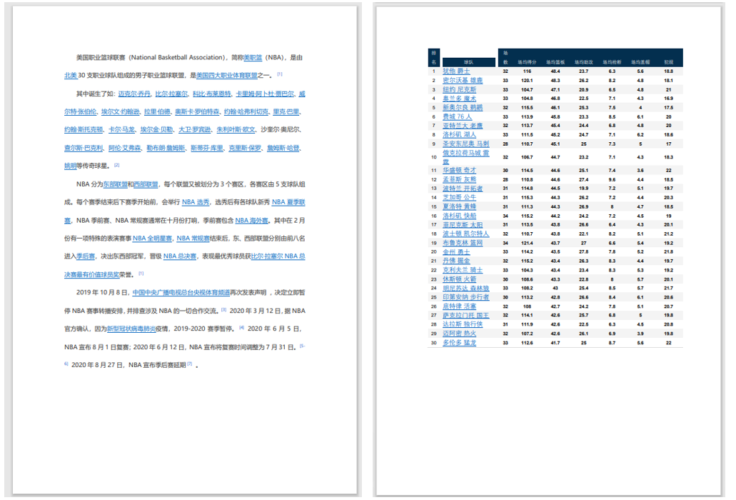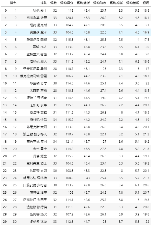 以NBA 2020-2021 常规赛数据作为范例,pdf表格如下: