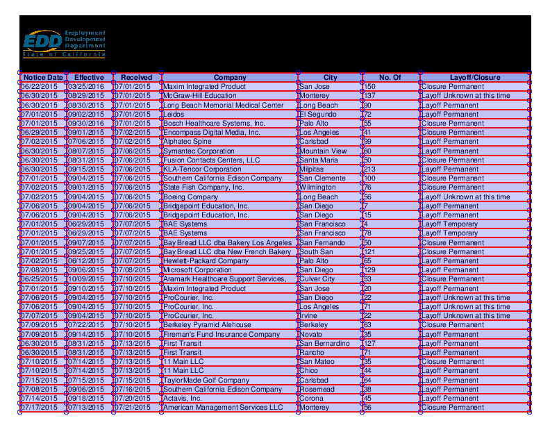 pdfplumber支持对图表进行可视化调试,能输出图像,显示如何提取表。