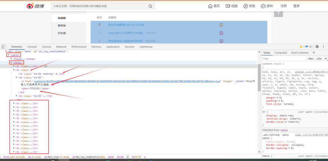 爬取微博热搜数据