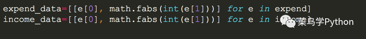 我们把数据用推导列表进行展开,通过'-'认为是每月开销,'+'认为是每月收入。然后再对每一段数据进行清洗,取掉序列标号。