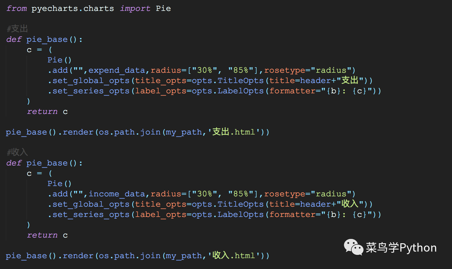 如果说上面这些加加减减好想也没有什么特别的,只是进行数据的统计,谈不上很炫酷呀。那么下面几行代码可以才是我们的重头戏,几行代码立马让你眼前一亮:
