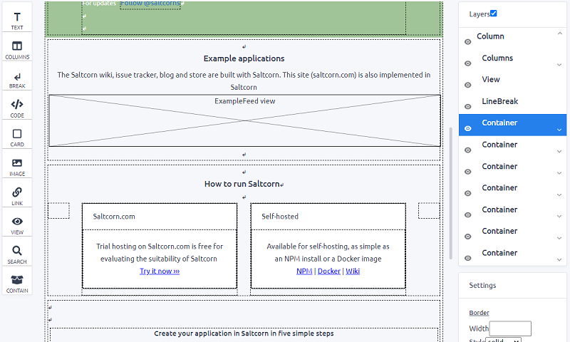 Saltcorn 是一个无代码数据库管理器 Web 应用程序。它配备了一个引人注目的仪表板、丰富的生态系统和视图构建器以及可主题化的界面。几乎没有编码经验的用户可以在几分钟内构建一个丰富的交互式数据库应用程序。公司也可以使用它来创建日常使用的工具并即时重新塑造它们。