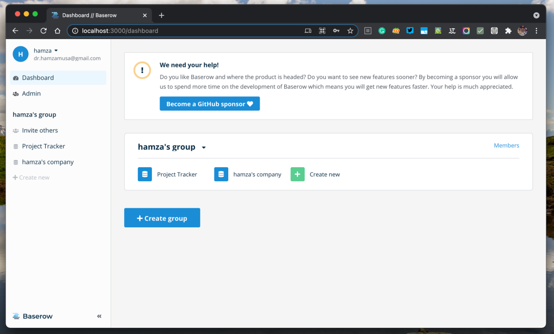 因为 Baserow 是一个模块化系统,它提供了一个完整的 REST-API 无头系统,所以它吸引了移动开发人员的注意,将其用作他们应用程序的后端。Baserow 正在积极开发中。