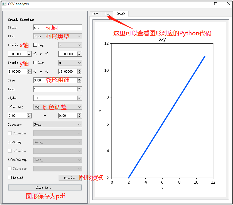 # 第一种形式 import sviewgui.sview as sv sv.buildGUI() # 第二种形式 import sviewgui.sview as sv FILE_PATH = "User/Documents/yourdata.csv" sv.buildGUI(FILE_PATH) # 第三种形式 import sviewgui.sview as sv import pandas as pd FILE_PATH = "User/Documents/yourdata.csv" df = pd.read_csv(FILE_PATH) sv.buildGUI(df)