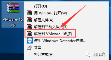 1.选中下载的【VMware-16】软件压缩包,鼠标右击选择【解压到VMware-16】。