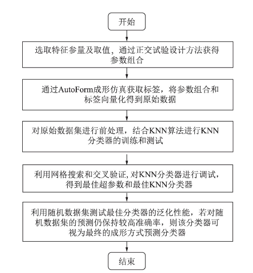 kNN方法可以实现分类任务和回归任务。在分类任务中,一般使用“投票法”,即在k个“近邻”样本中出现最多的种类标记作为预测结果。在回归任务中,一般使用“平均法”,即将这k个样本的实值输出标记的平均值作为预测结果。在定义了相似度评价准则后,还可以基于相似度的大小进行加权投票和加权平均。相似度越大的样本权重越大。其中KNN算法分类流程如下图: