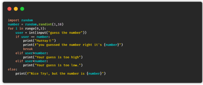 目的:在这个游戏中,任务是创建一个脚本,能够在一个范围内生成一个随机数。如果用户在三次机会中猜对了数字,那么用户赢得游戏,否则用户输。