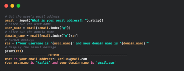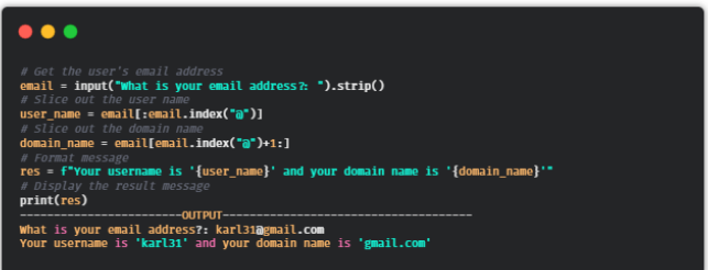 目的:编写一个Python脚本,可以从邮件地址中获取用户名和域名。
