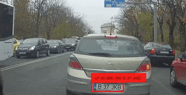 首先,YOLOv3 模型从摄像机处接收到一帧帧图像,然后在每个帧中找到车牌的边界框。这里不建议使用非常精确的预测边界框——边界框比实际检测对象大一些会更好。如果太挤,可能会影响到后续进程的性能;