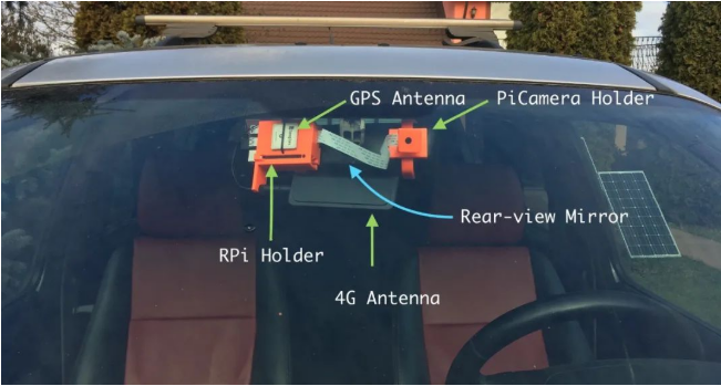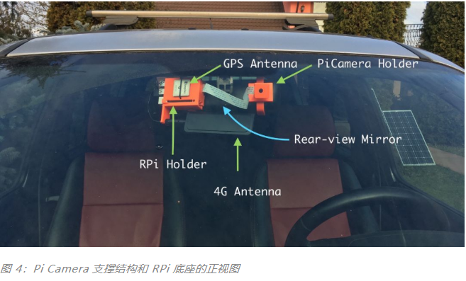 在后视镜的方向上,树莓派+ GPS 模块+ 4G 模块将保留下来。关于我使用的 GPS 和 4G 天线,你可以去看一下我关于 EC25-E 模块的文章;
