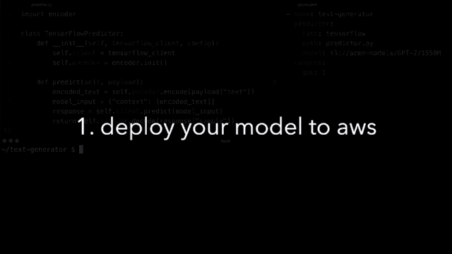 定义每个 API 的预测器。基本上你要做的就是在 cortex 中定义一个特定类的 predict 方法来接收一个有效负载(所有的 servy part 都已经被平台解决了),这个有效负载来可以来预测结果,然后返回预测结果。就这么简单!