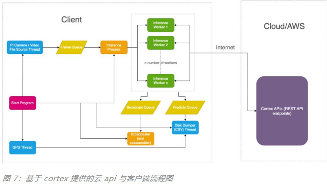在我们的例子中,客户端是树莓派,推理请求发送到的云 api 由 AWS 上的 cortex 提供。