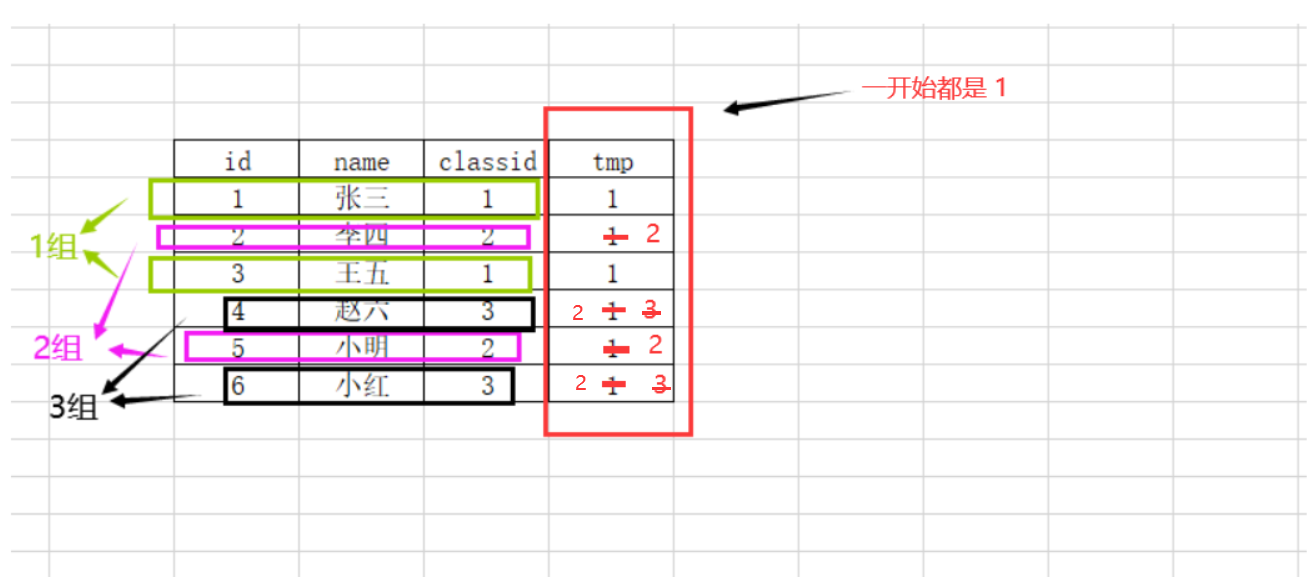 select count(1),id from stu group by classid;