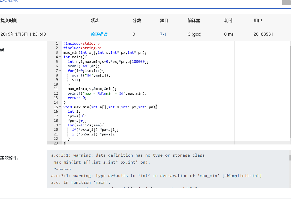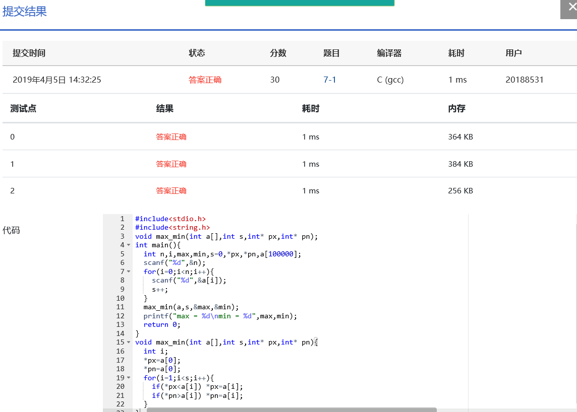 读入n个整数,调用max_min()函数求这n个数中的最大值和最小值。