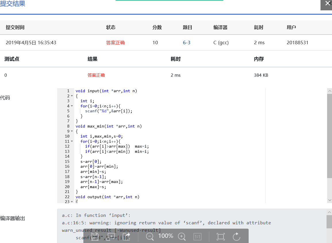 预习作业 6-3 最小数放前最大数放后 (10 分)