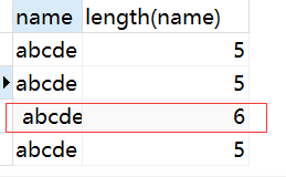 1 CREATE TABLE myisam_char (NAME CHAR ( 10 )) ENGINE = myisam; 2 insert into myisam_char values ('abcde'),("abcde"),(" abcde "),("abcde "); 3 select name,length(name) from myisam_char;