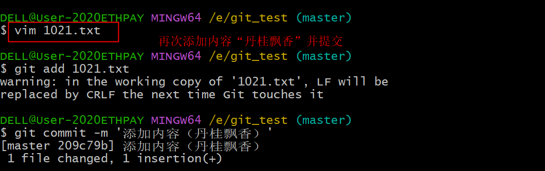 2.git add:将文件提交到暂存区;git commit -m:将暂存区文件提交到仓库(单引号内为注释);git status:检查当前文件状态(检测是否有未提交的文件)