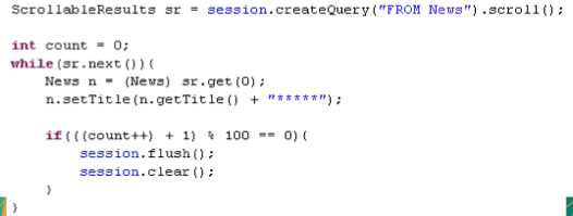 - 批量更新: 在进行批量更新时, 假设一下子把全部对象都载入到 Session 缓存, 然后在缓存中一一更新, 显然是不可取的
