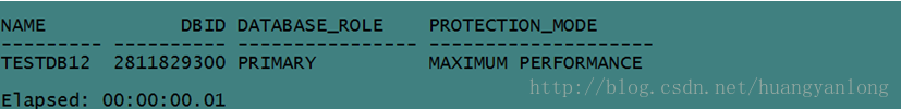 SQL>selectname,dbid,database_role,protection_mode from v$database;