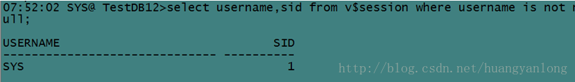 SQL>select username,sid from v$session where username is notnull;