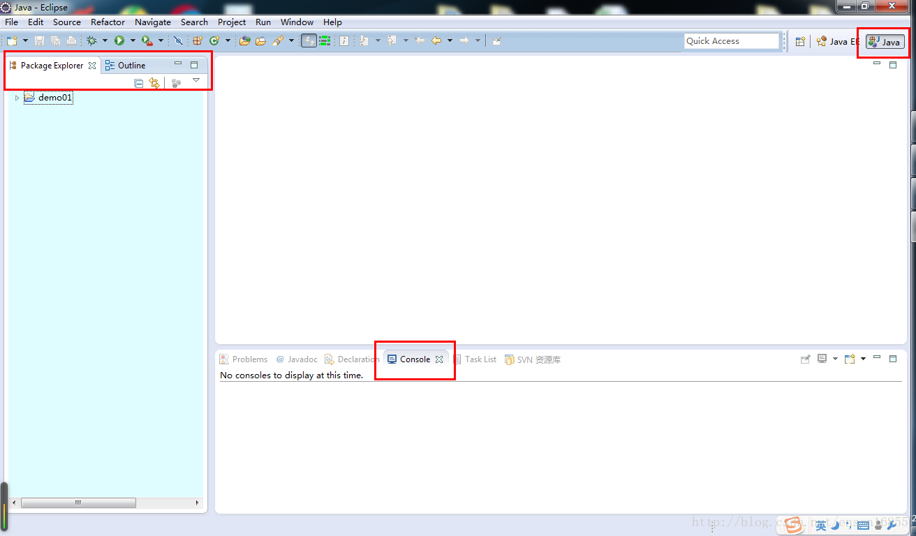 java——> 表示的眼下在java开发视图,旁边还有个javaee视图,再旁边的button,能够选择对应的视图