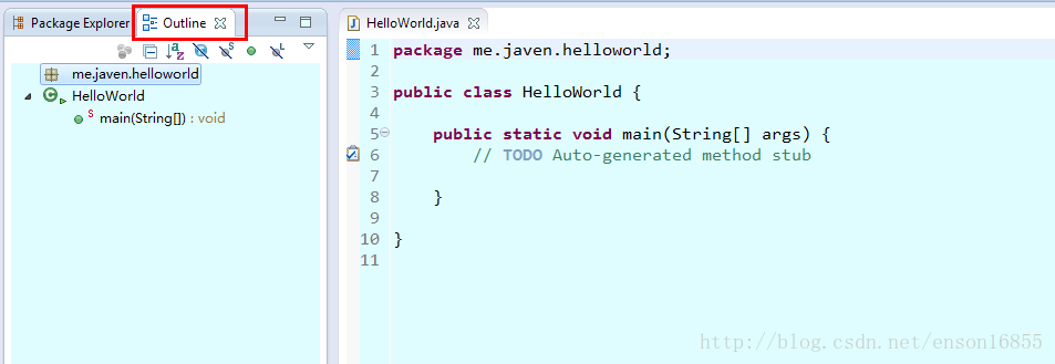 Outline——>表示眼下操作的类的方法,包,属性等等的列表,这个在实际开发中也非常常常使用。