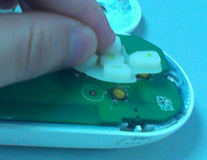 最初按键在结构设计上採用类似路由器按键的方式,比較简单,在PCB按键位置放置一个波仔片,然后上面加一个橡胶的按键,按下橡胶时,其内部的触点压下波仔片,波仔片把电路连通,从而实现一次按键动作,属于机械式按键方式。