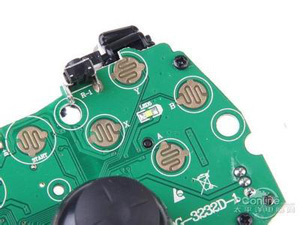 我们经过研究其它厂商的手柄发现,大多数游戏手柄并没有採用电容式按键,而是在PCB板上採用手指交叉状的触点,然后上面覆盖一层软胶,软胶内部有一块导电橡胶,软胶上是硬塑料的按键。这样当硬塑料按键被按下时,压下软胶,软胶内的导电橡胶向下压在PCB板的触点上,因为导电橡胶的导电性把触点的正负极连通,同一时候导电橡胶的柔软度使得其更easy与触点结合紧密,手指交叉状的触点也加大了正负极连通的easy度,这样就实现了一次按键动作。