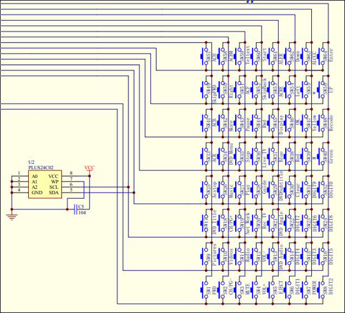 在电路上,非常多游戏手柄採用的是正交矩阵的电路设计方式,这样可以节省GPIO的用量,在GPIO不够用的MCU芯片上,是一种好的选择。但假设用这样的方式,软件上就不能採用中断式的检測了,而要採用扫描式的检測,须要定时去扫描横轴和众轴的GPIO,当检測到某个横轴和众轴的GPIO为低电平时,就能确定其交叉的那个点所相应的按键被按下了。在我们的MCU上GPIO数量是够的,所以为了软件实现的简单起见,还是维持原有的每一个按键相应一个GPIO,每一个GPIO接地的方式。