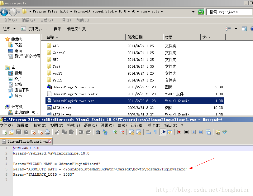 1. 将3dsmaxPluginWizard.ico, 3dsmaxPluginWizard.vsdir, 3dsmaxPluginWizard.vsz等三个文件拷到VS的VC\VCProjects文件夹下。