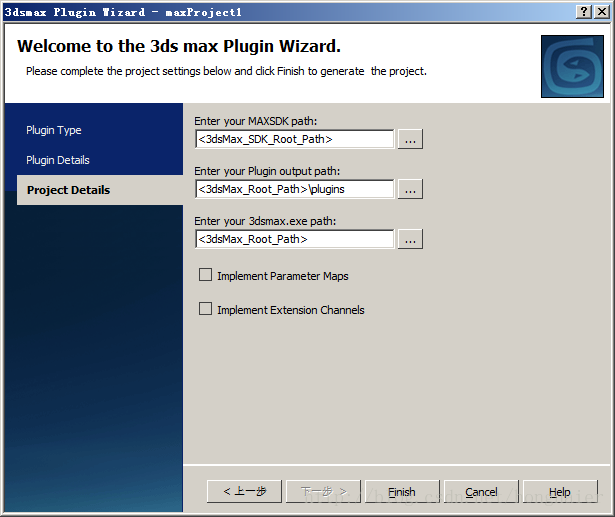 选择三个输入框要求的路径后点击“Finish”,就可以生成一个新的导出插件project。
