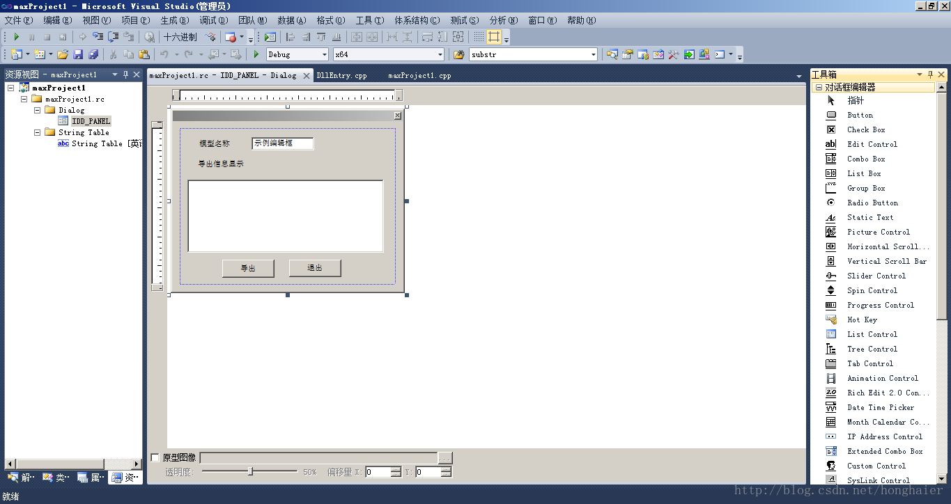 这个就是我们导出插件的默认导出设置对话框,它相应maxProject1.rc中的IDD_PANEL对话框资源。
