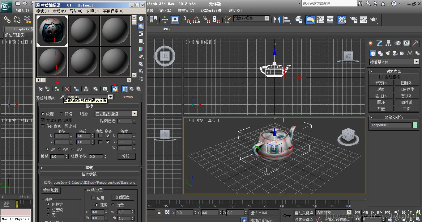 这里我们将 HelloWorld 的 Cocos2d-x背景图做为贴图设置给茶壶。