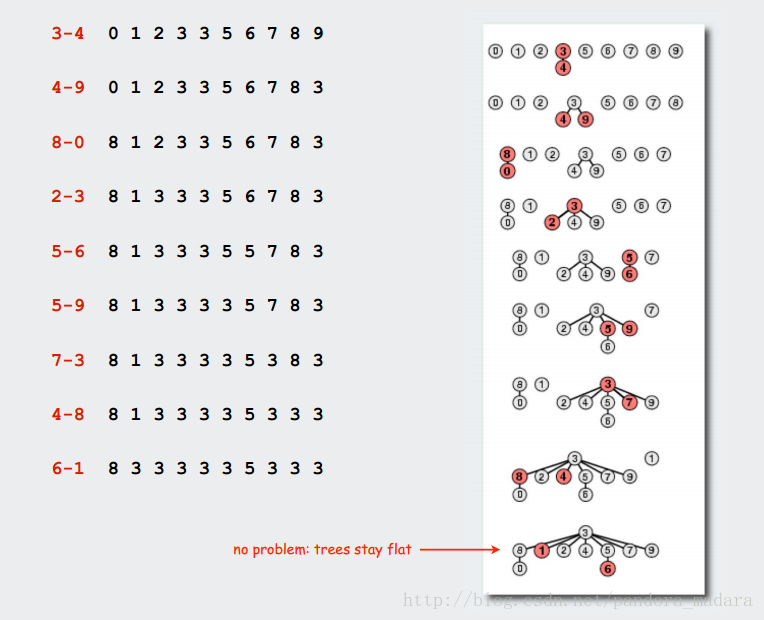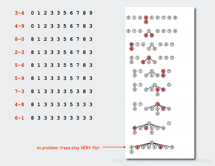 将节点数小的集合拼接到节点数大的集合中去,仅仅改动小集合的根节点的父亲,其它节点父亲不动。按重合并能保证树的平缓增长。