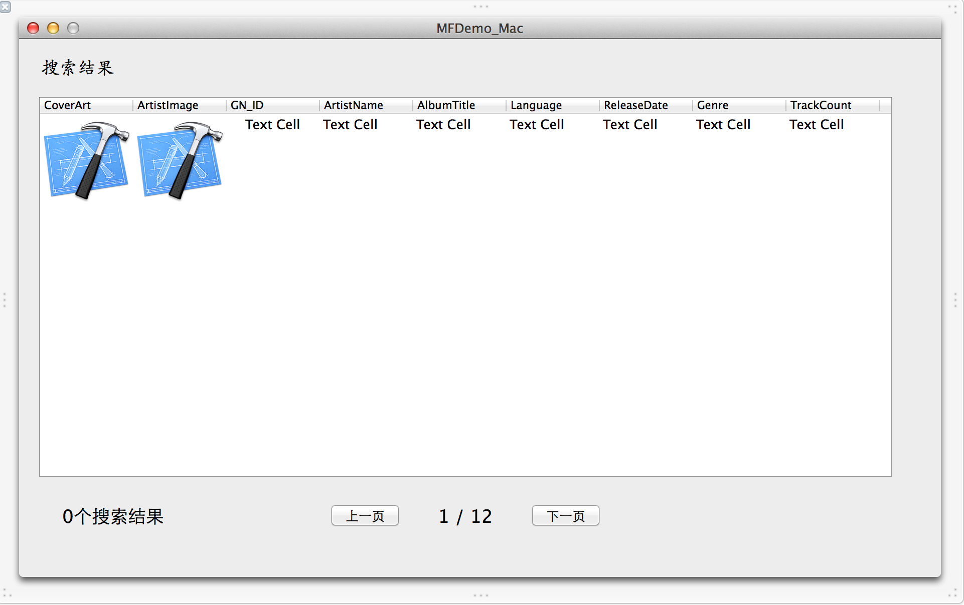 #pragma mark - NSTableViewDataSource - (NSInteger)numberOfRowsInTableView:(NSTableView *)tableView { return [_searchAlbums count]; } - (id)tableView:(NSTableView *)tableView objectValueForTableColumn:(NSTableColumn *)tableColumn row:(NSInteger)row { NSString *unknown = @"未知"; MFAlbum *album = _searchAlbums[row]; NSString *identifier = tableColumn.identifier; if ([identifier isEqualToString:@"coverArt"]) { NSURL *coverArtURL = [NSURL URLWithString:album.coverArtURLString]; NSImage *image; if (coverArtURL) { image = [[NSImage alloc] initWithContentsOfURL:coverArtURL]; } else { image = [NSImage imageNamed:@"NotFound"]; } return image; } else if ([identifier isEqualToString:@"artistImage"]) { NSURL *artistImageURL = [NSURL URLWithString:album.artistImageURLString]; NSImage *image; if (artistImageURL) { image = [[NSImage alloc] initWithContentsOfURL:artistImageURL]; } else { image = [NSImage imageNamed:@"NotFound"]; } return image; } else if ([identifier isEqualToString:@"trackCount"]) { return [NSString stringWithFormat:@"%ld", album.trackCount] ?[NSString stringWithFormat:@"%ld", album.trackCount] : unknown; } else { NSString *info = [album valueForKey:identifier]; return info ?