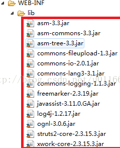 <filter> <filter-name>struts2</filter-name> <filter-class>org.apache.struts2.dispatcher.ng.filter.StrutsPrepareAndExecuteFilter</filter-class> </filter> <filter-mapping> <filter-name>struts2</filter-name> <url-pattern>/*</url-pattern> </filter-mapping>3.增加类库