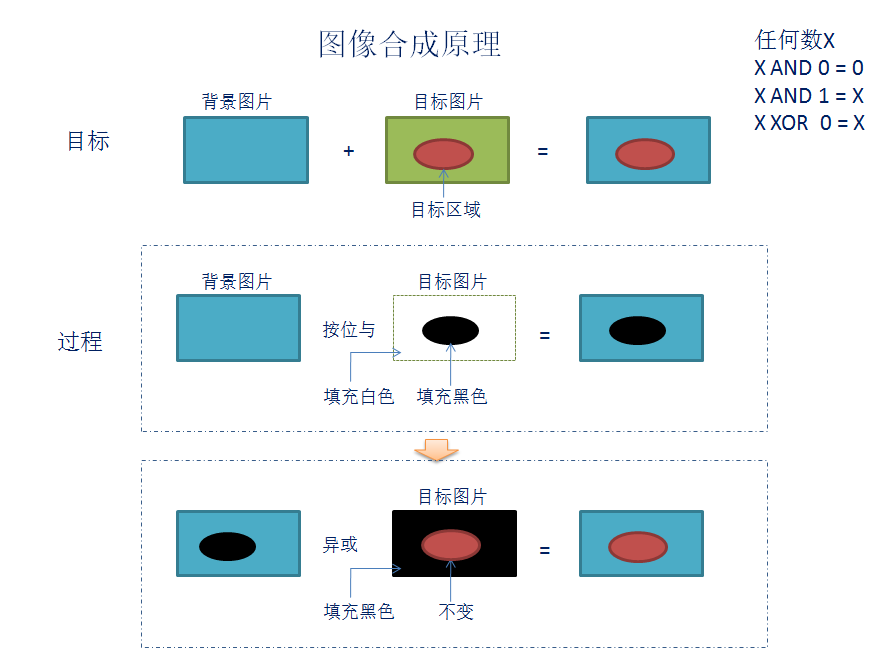 而XOR运算时,0与不论什么颜色X计算得到的也是颜色X 。